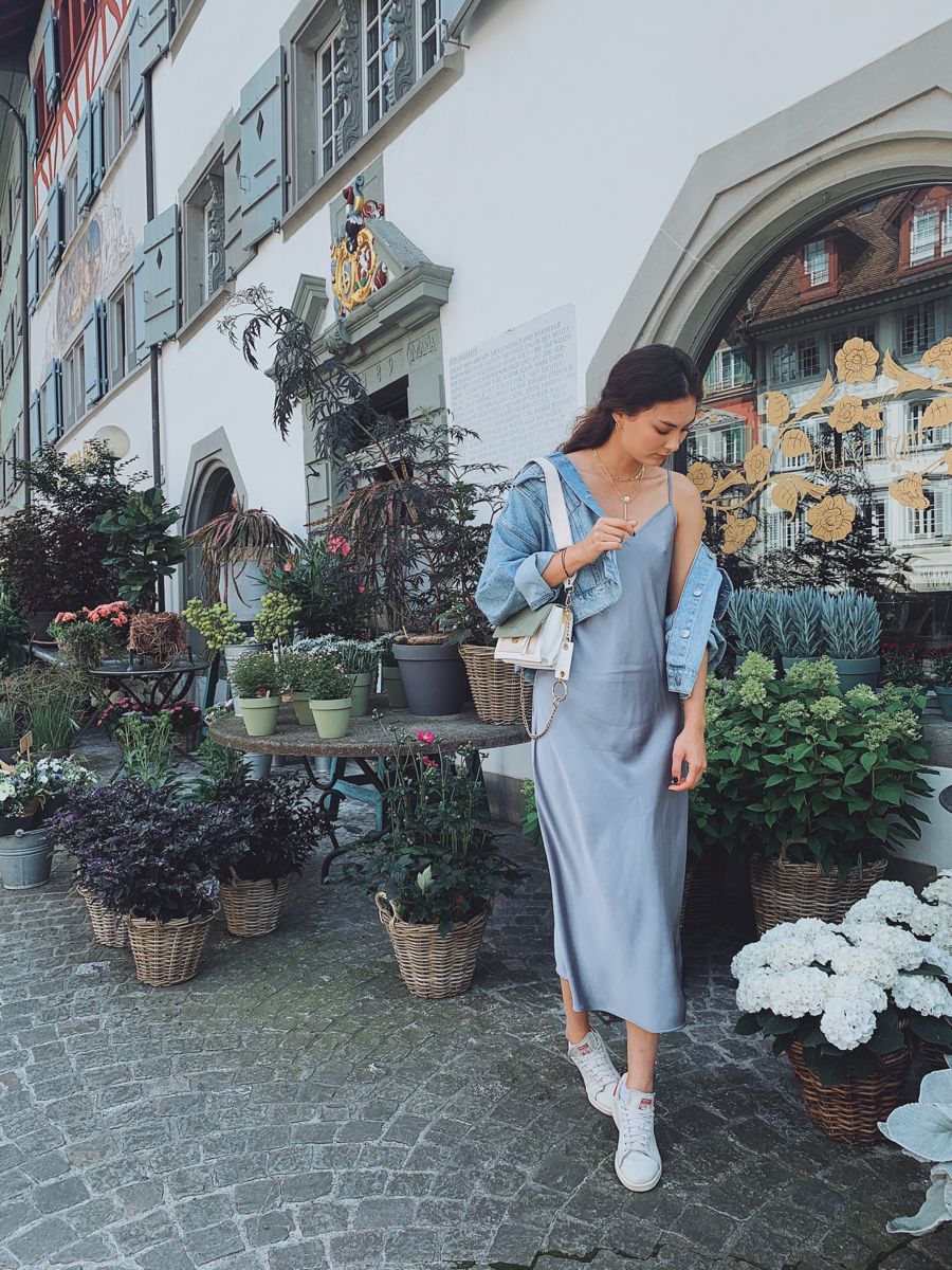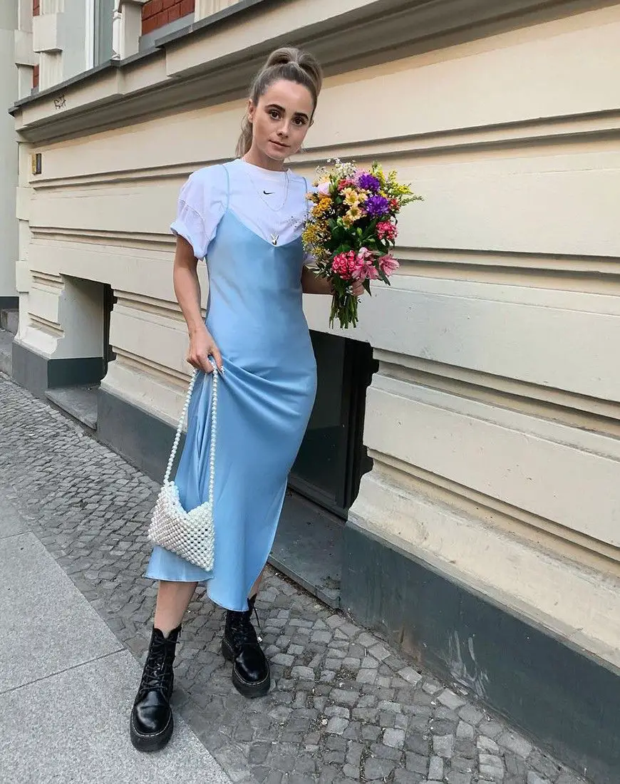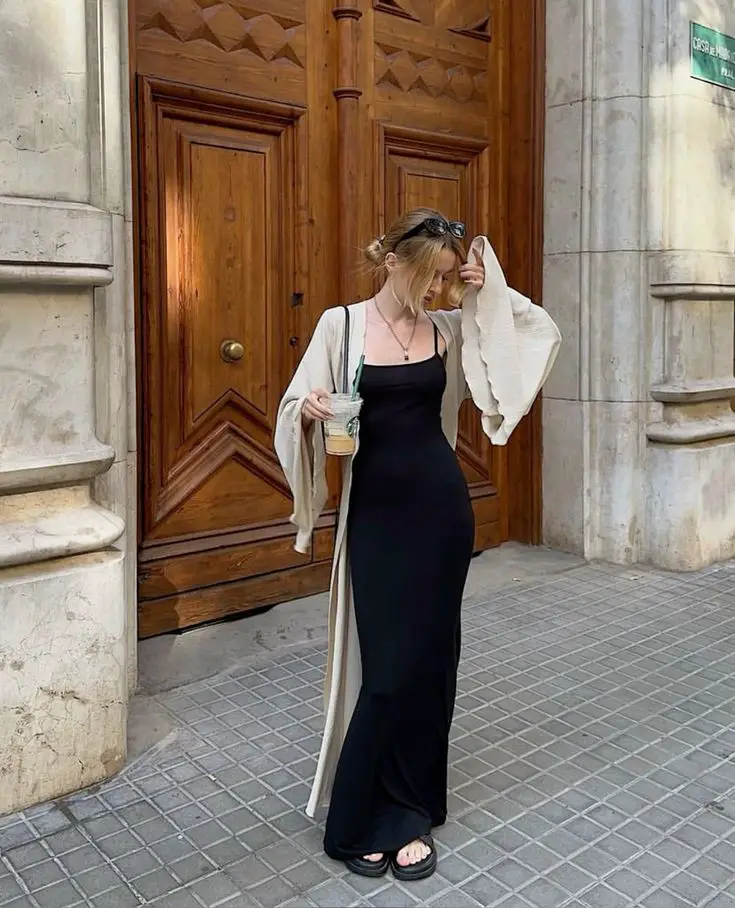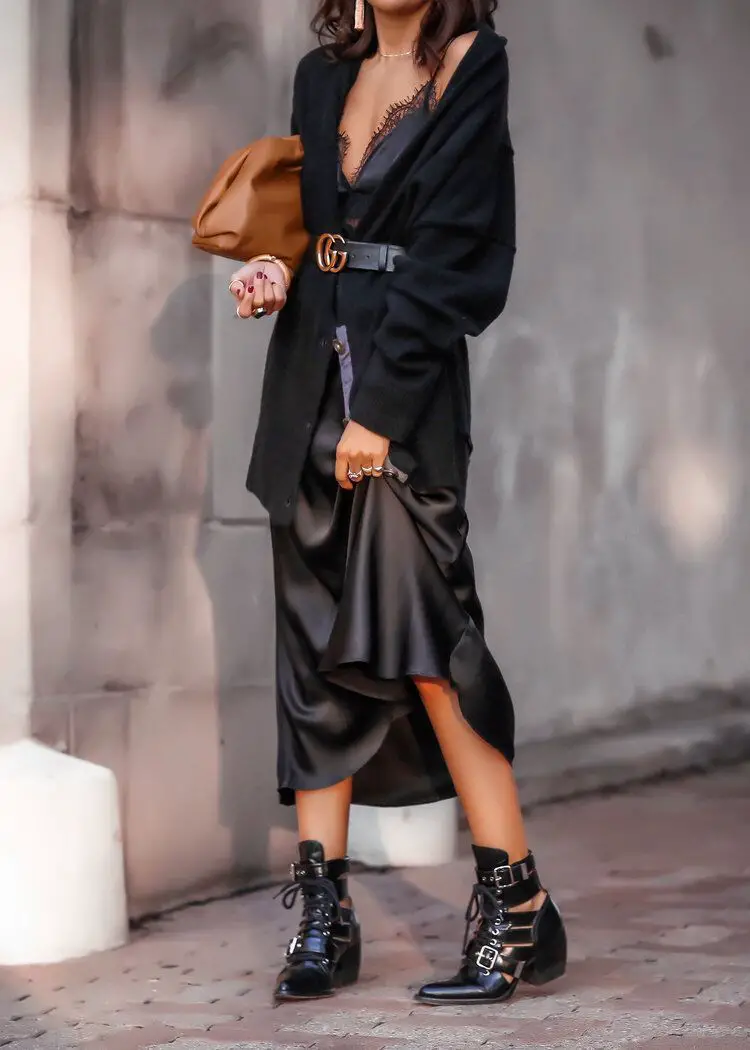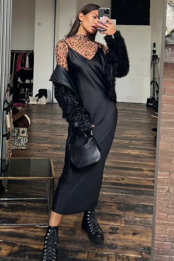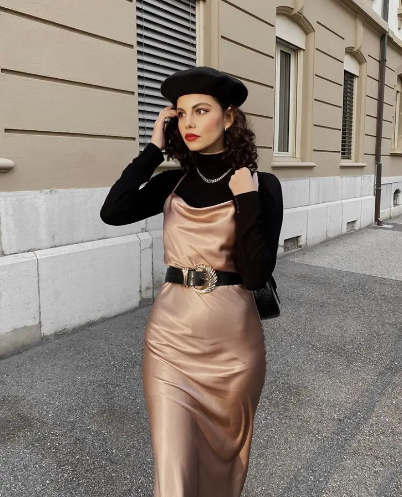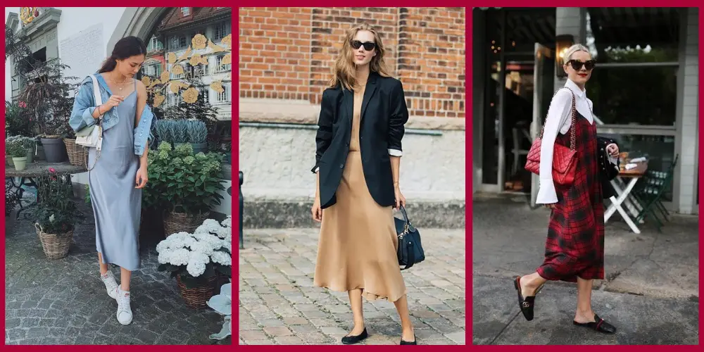 The best part? You don’t need to be a styling pro to pull them off. With just a few layering pieces, accessories, or outerwear swaps, slip dresses can go from classy to cozy, minimal to glam, soft girl to street fashion — all without breaking a sweat. Think satin slip dresses with oversized jackets, chic monochrome silk looks, slip dresses paired with sneakers for weekend errands, or layered cozy knits when the air turns cooler. The styling options are endless and so fun to play with.
