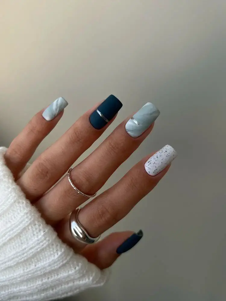 This season, it’s not just about color—it’s about texture and contrast. Matte nails give your manicure that plush, velvety vibe that screams modern elegance. From matte French tips to ombre fades, marble designs, and frost-inspired patterns, there’s a style for every mood and outfit.