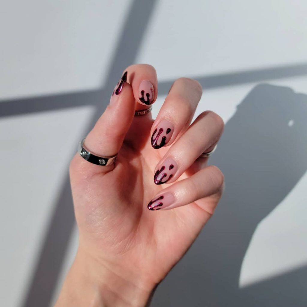 Take your Halloween nails up a notch with simple designs, like a spider web on a nude or polished base or a ghostly French tip (you’ll see what we mean next). If you want your nails to be the costume, you can hand-paint Halloween scenes from famous movies like Scream and Hocus Pocus or go further with spooky designs like blood spurts and Monster manis.