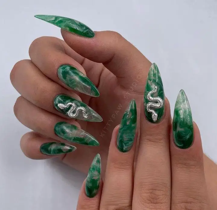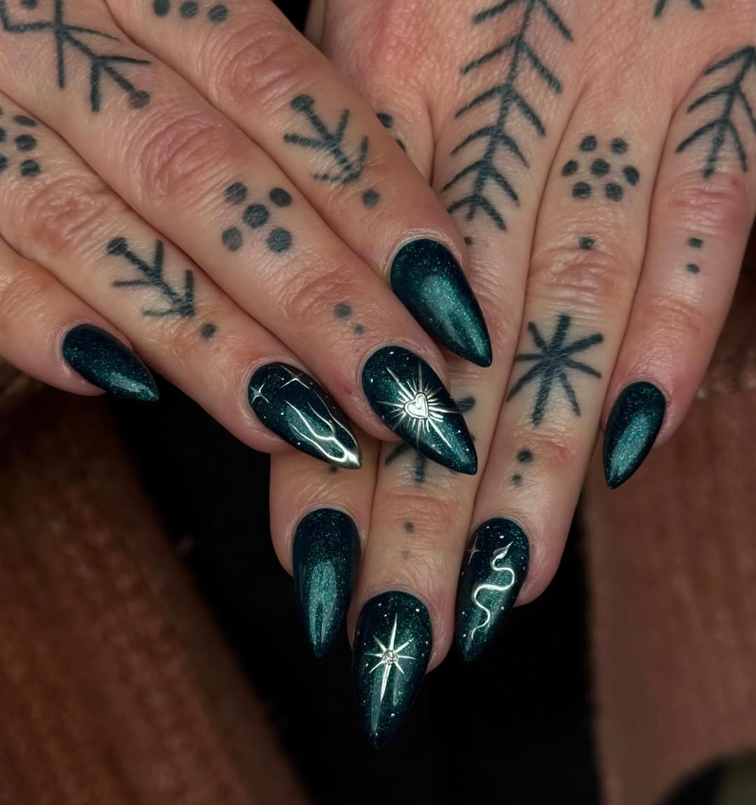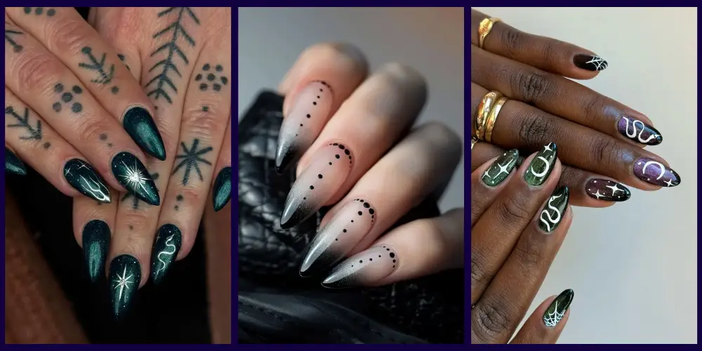This list of 34 witty witchy nails is packed with inspiration that’s spooky yet stylish. We’ve rounded up looks that balance creepy-cute charm with gothic sophistication, so you can find a design that feels authentically you. Whether you’re aiming to give off enchanted forest vibes, channel your inner dark sorceress, or embrace playful hocus-pocus fun, there’s a witchy nail design here that will spook out in the best way possible.