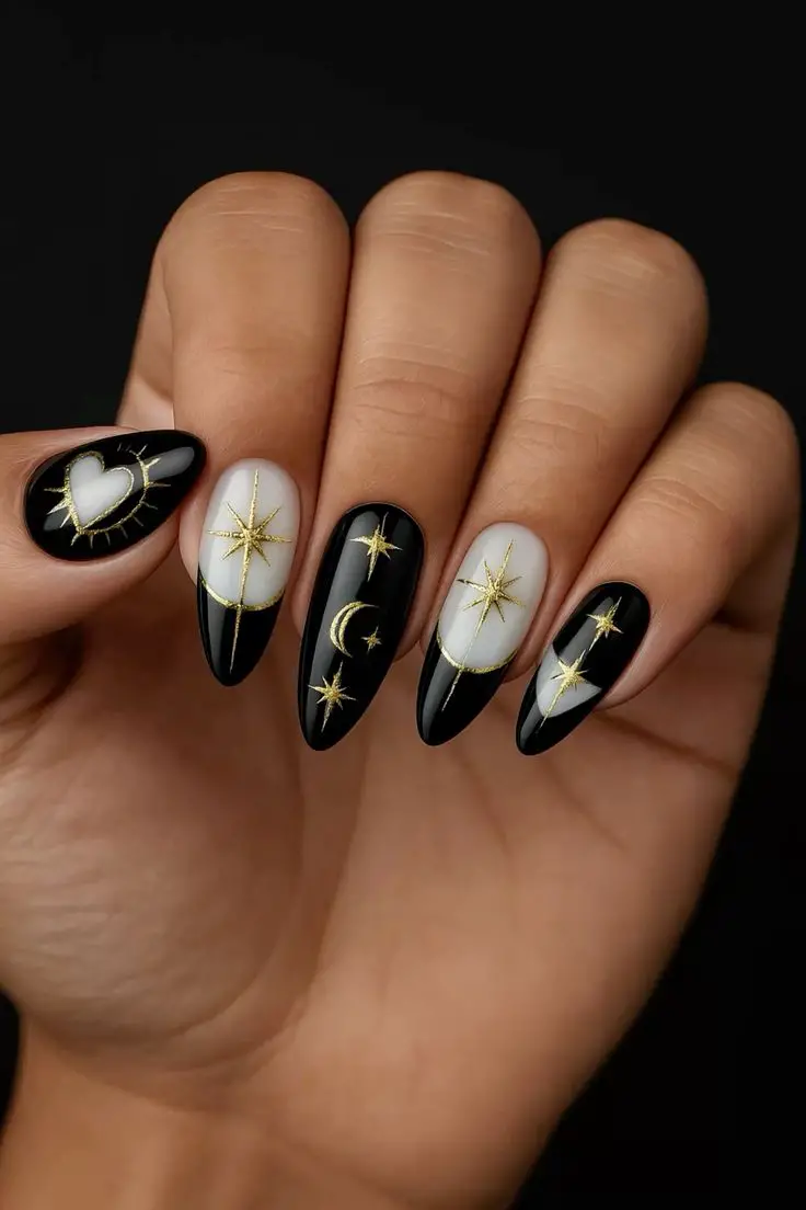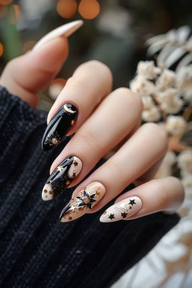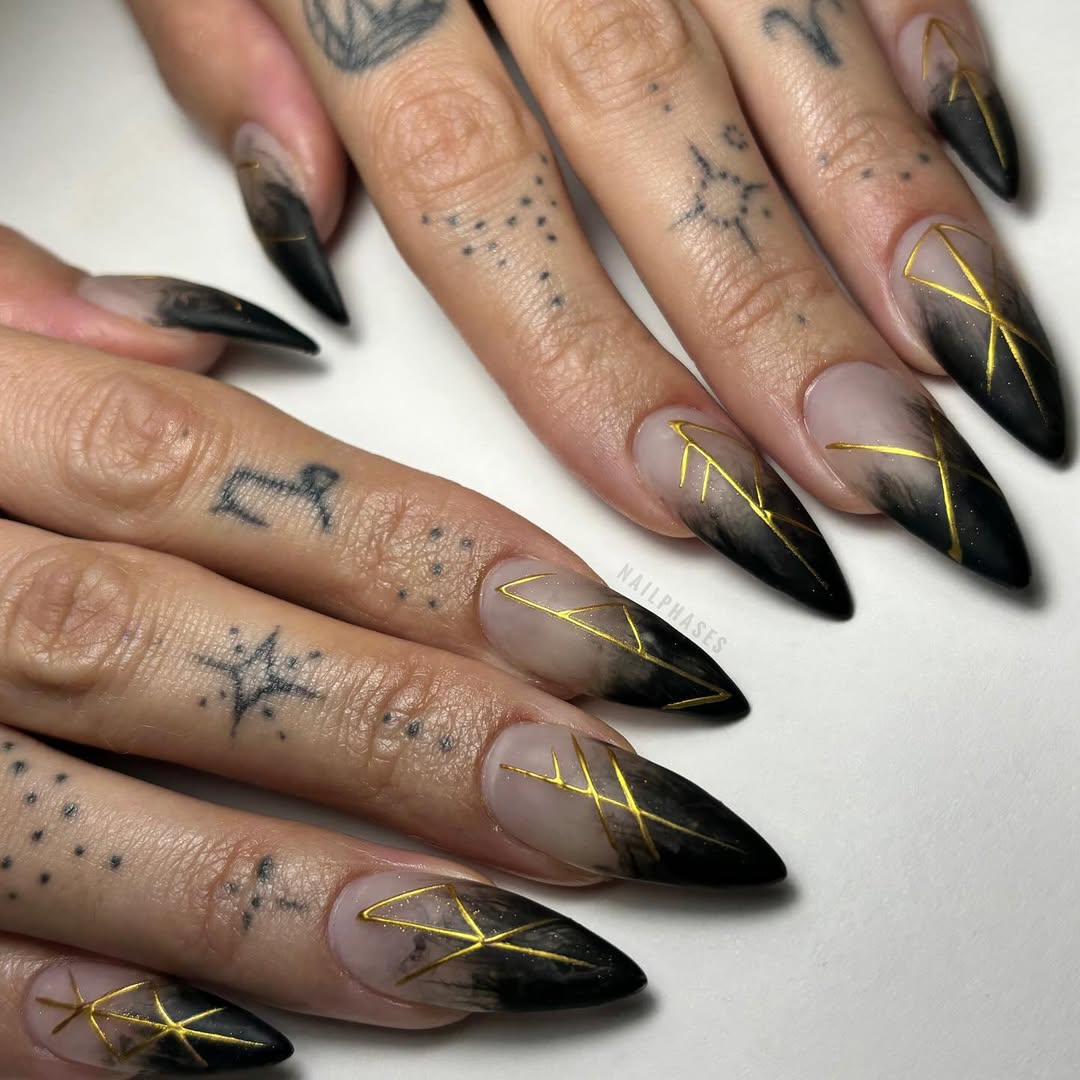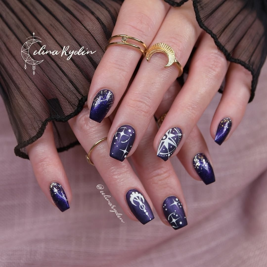 From classic black talons and mystical moons to glittery cauldrons and potion-inspired designs, witchy nail art comes in endless styles. You can lean into minimalist chic with matte black and silver accents, or go all out with 3D embellishments like crystals, spider webs, and shimmering flames. The beauty of these designs lies in their versatility—you can match them to your costume, elevate your everyday fall outfits, or let them stand on their own as your main Halloween accessory.