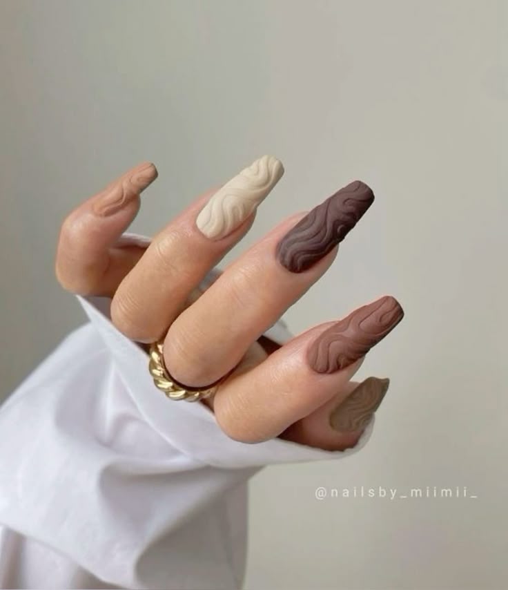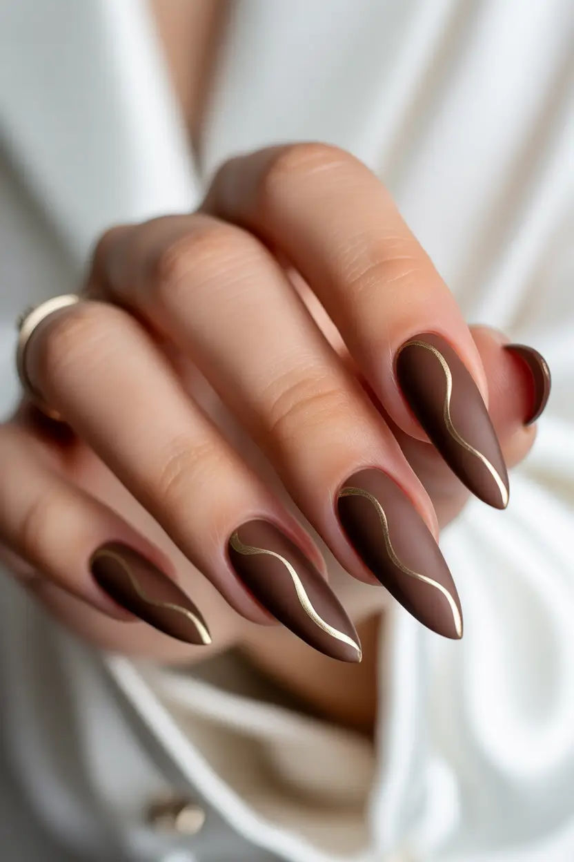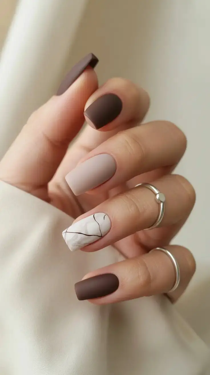 If cozy vibes had a nail color, it would be mocha latte. Think creamy coffee tones blended with soft matte polish that feels chic and wearable every day. Perfect for minimalist lovers, these nails work beautifully in solid shades or with gradient designs for a more creative touch. Pair them with a neutral cardigan, trench coat, or fall boots, and your entire look comes together seamlessly. These nails are especially flattering on short rounded nails, making them a great option if you love understated, classy styles.