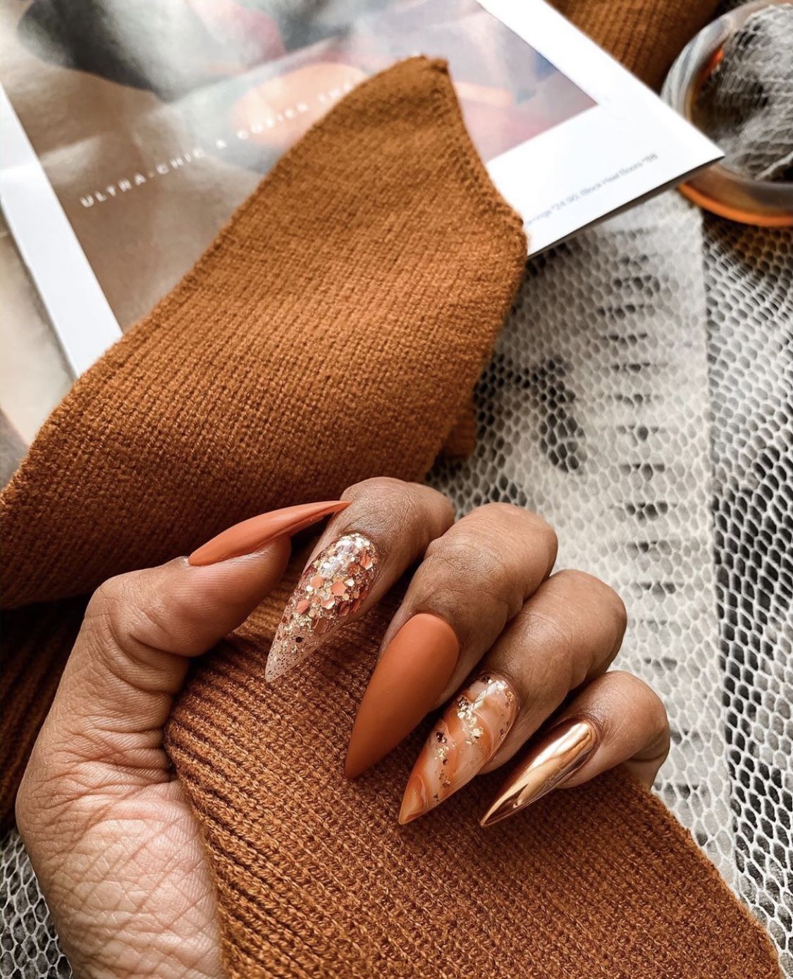 Nothing says fall like pumpkin spice, and now you can wear it on your nails. Imagine burnt orange nails with a soft matte finish that feels cozy yet trendy. Add subtle accent details—like a single glitter nail or tiny gold foil touches—for a little spice without overwhelming the look. These nails are perfect for fall festivals, pumpkin patch photos, or just sipping your latte in style. Warm, bold, and oh-so-seasonal, pumpkin spice matte nails are the ultimate autumn accessory that you’ll want to wear all season long.