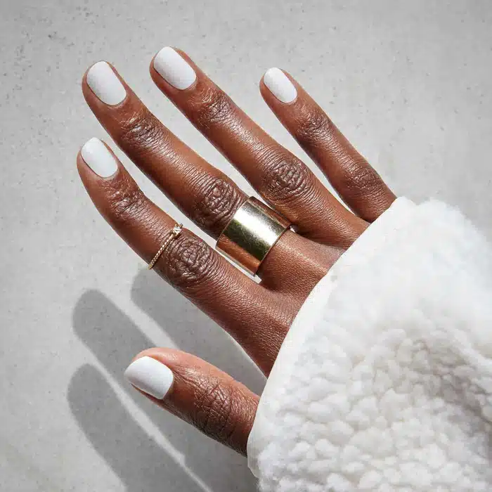 White nails in the fall? Absolutely. Sleek white polish creates a striking contrast on dark skin, making nails look clean, modern, and fashion-forward. This unexpected fall choice pairs surprisingly well with deeper seasonal colors, acting as a fresh pop against warm, cozy outfits. Go for a glossy finish to keep it crisp, or add gold accents for a festive vibe. White nails look especially chic on almond or coffin shapes, giving your manicure an elevated, editorial feel. It’s minimalism with a powerful punch.