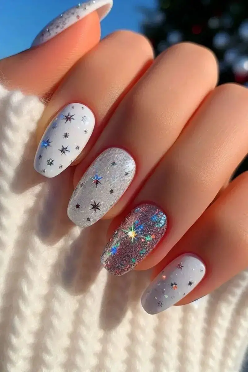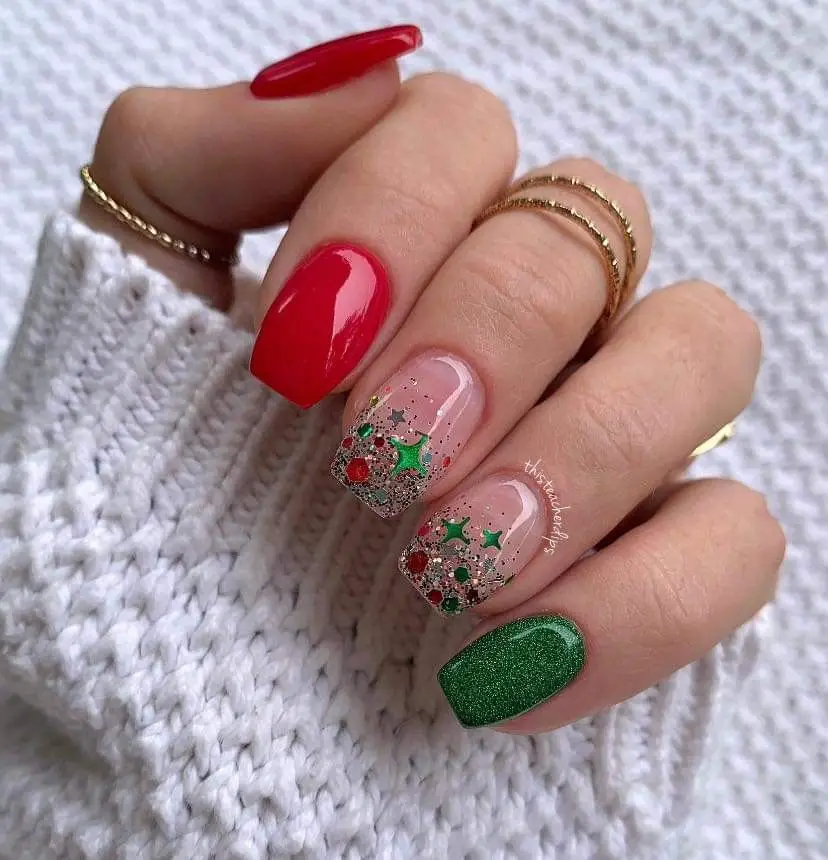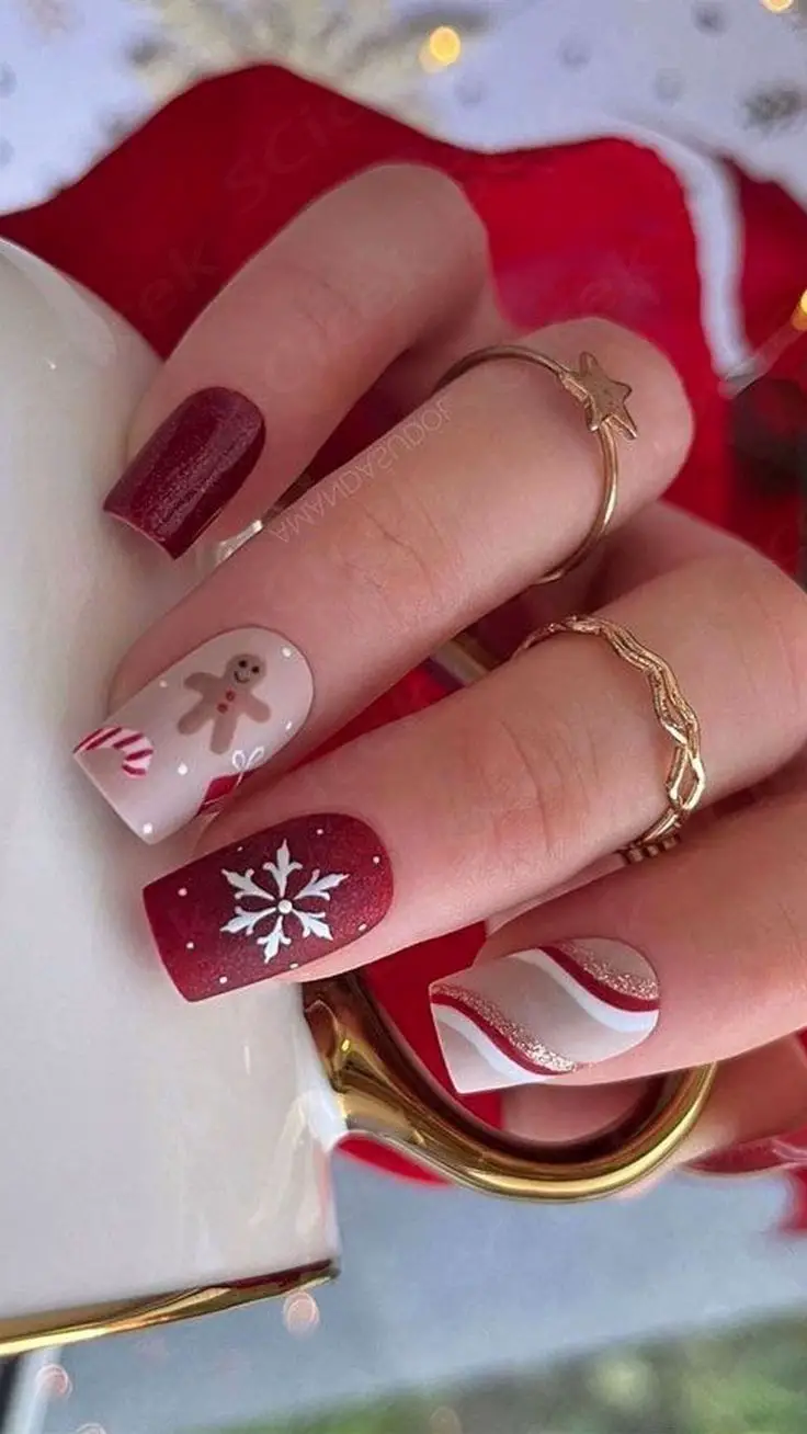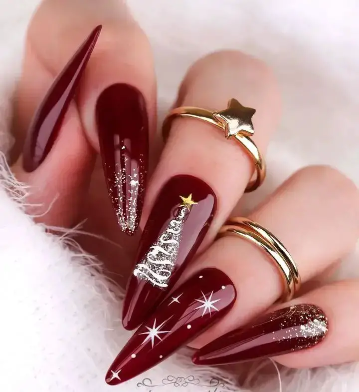 Whether you’re heading to a Christmas party, a New Year’s Eve bash, or just want your nails to match your favorite fuzzy sweater, there’s a design to match every vibe. Think shimmery silvers that sparkle under fairy lights, glossy deep reds that feel timeless and classy, and frosted whites that give that snow-queen aesthetic. And for the trend-lovers, chrome finishes, velvet textures, and mismatched festive designs are stealing the spotlight this season.