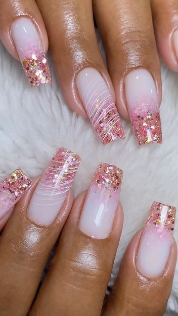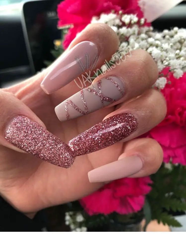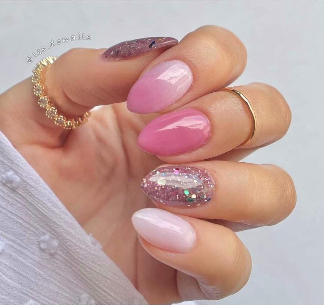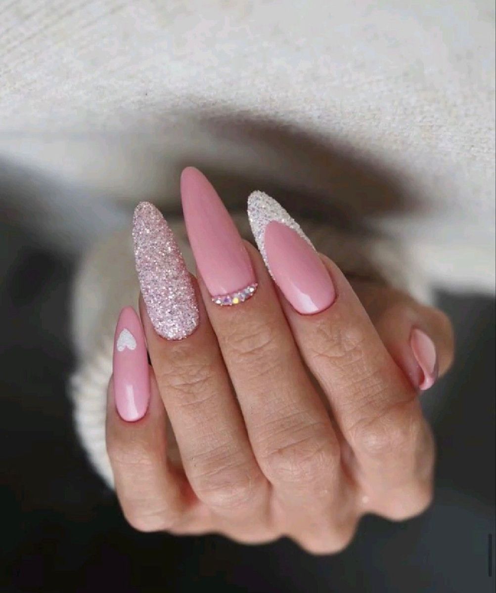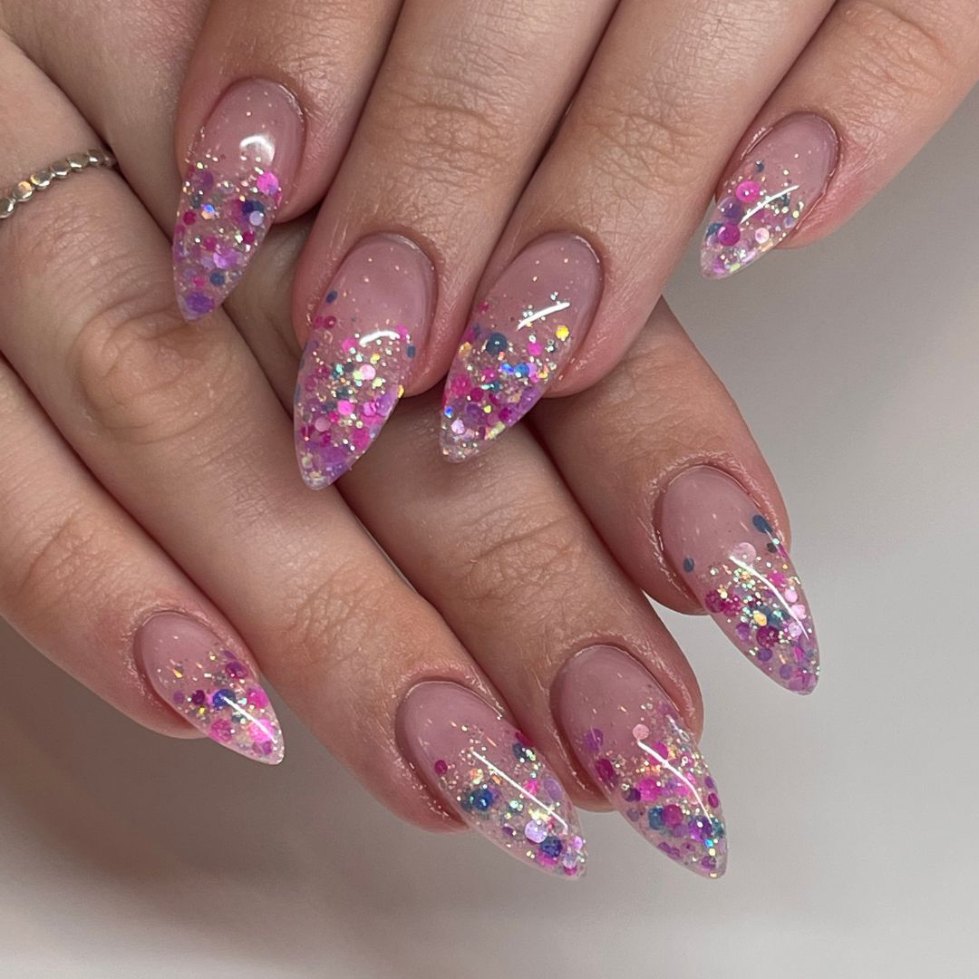 From baby pink shimmer to bold hot-pink sparkle, this trend is incredibly versatile. You can go soft and subtle with a rosy glitter wash, or full-on extra with chunky glitter and glam accents. Plus, pink is one of the easiest nail colors to pair with other shades—white, silver, nude, or even neon tones all look stunning with pink glitter. Whether you love short natural nails or long sculpted sets, there’s a glittery pink look that fits perfectly into your aesthetic.