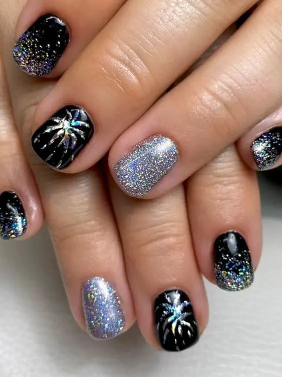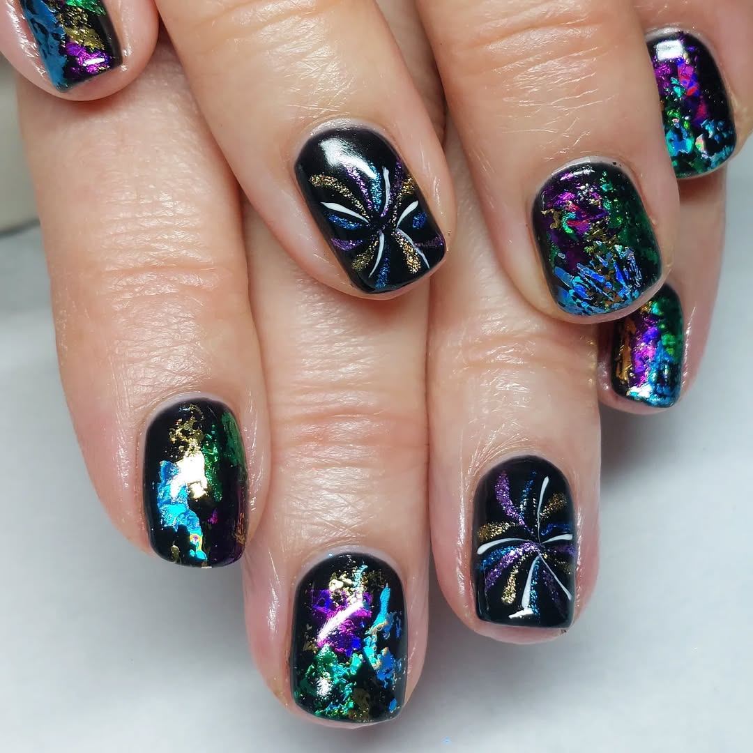 This year’s trending New Year’s nail styles are all about luxury and creativity. From sleek chrome finishes to bold gemstone embellishments, there’s no limit to how you can shine. Black and gold combos remain timeless for a sophisticated look, while silver chrome and holographic finishes bring futuristic flair to your fingertips. If you’re going for something more playful, try confetti nails, star-studded accents, or ombré glitter that fades like fireworks in the sky.