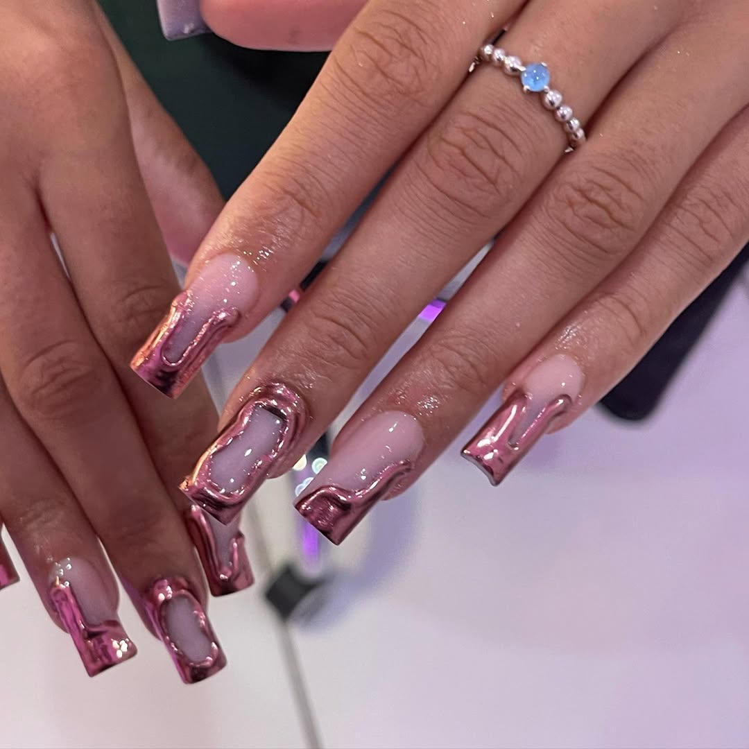 Whether you’re going for an elegant almond shape, short and sassy squovals, or long coffin nails that scream “main character,” pink chrome designs can be customized endlessly. Add glitter tips for extra shimmer, go ombré for a dreamy frost effect, or accent one nail with rhinestones for that luxe finish.