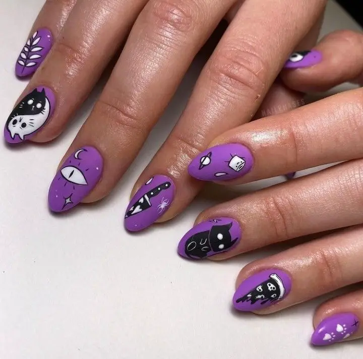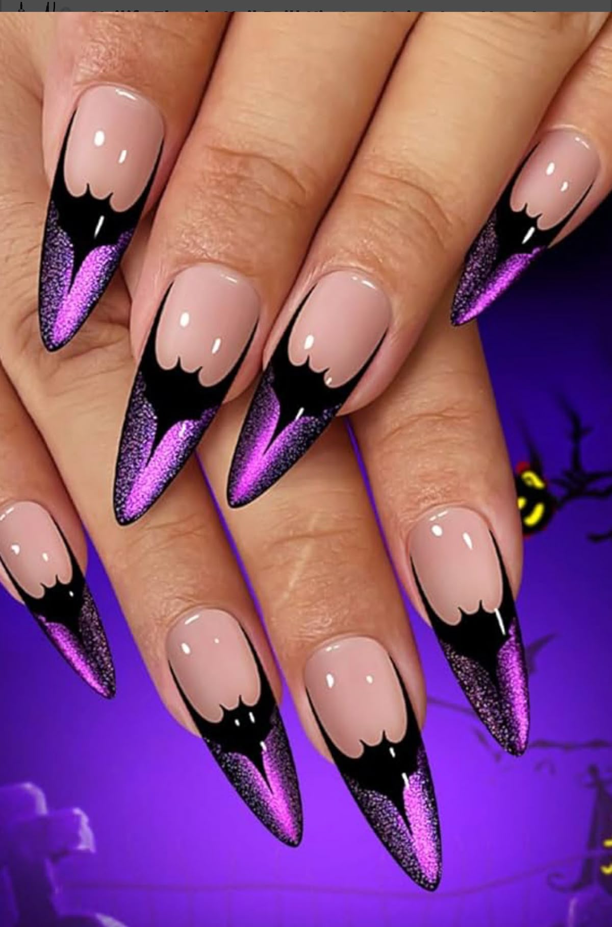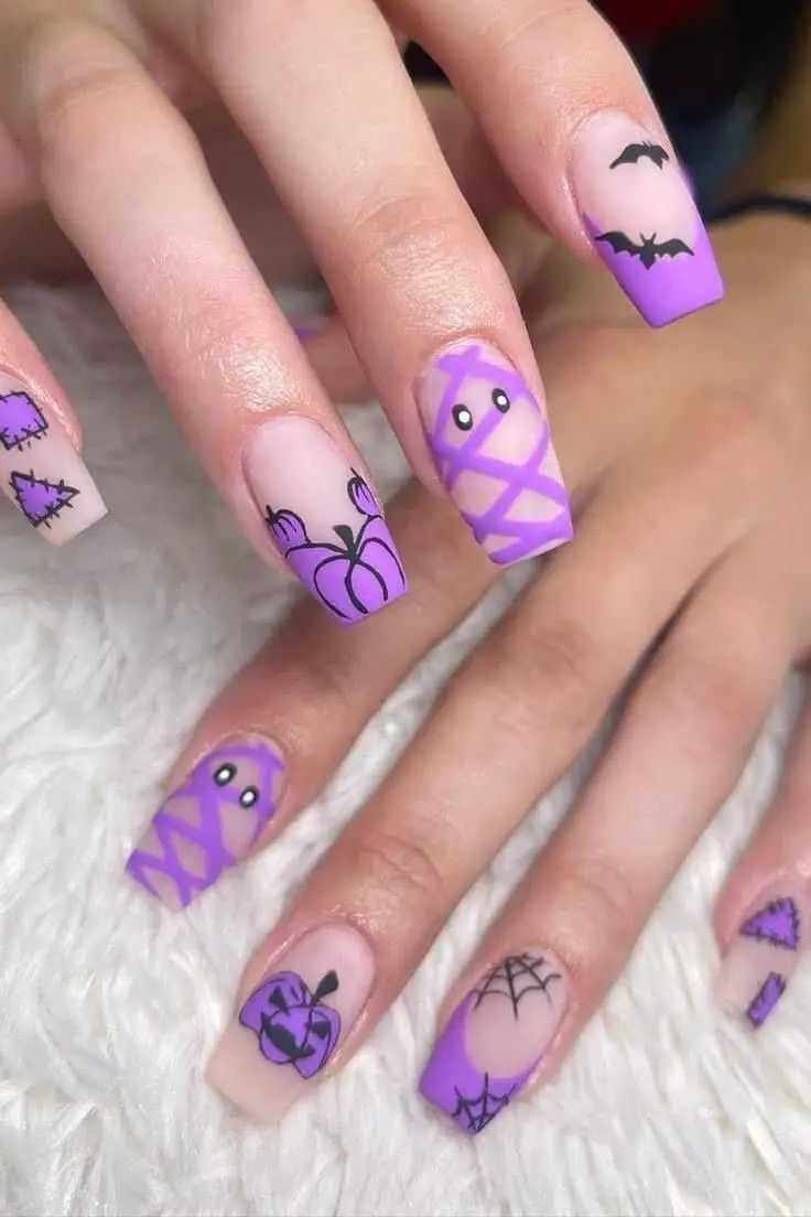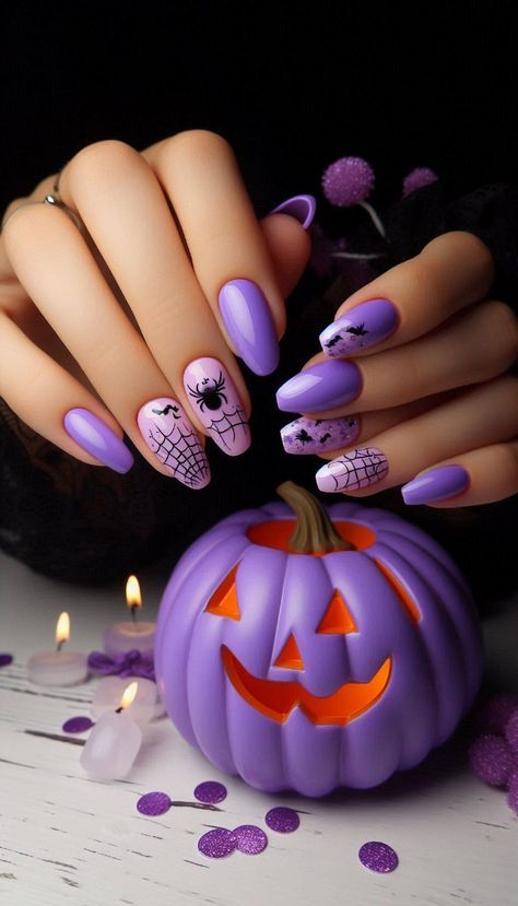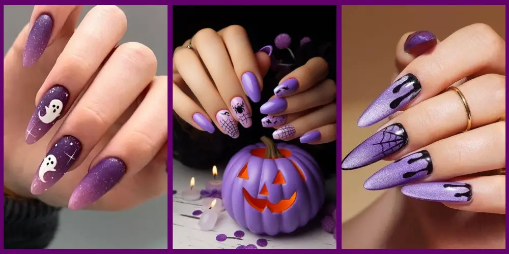 This season, purple nail designs are all about creativity and boldness. From ghostly lilac tips to shimmery violet ombrés, and even detailed witch hat accents, there are endless ways to let your nails tell a spooky story. Pair your purple mani with your Halloween costume or rock them solo for a festive vibe that turns heads. The beauty of purple is how versatile it is—it can be eerie, chic, or totally glam depending on the design you choose.