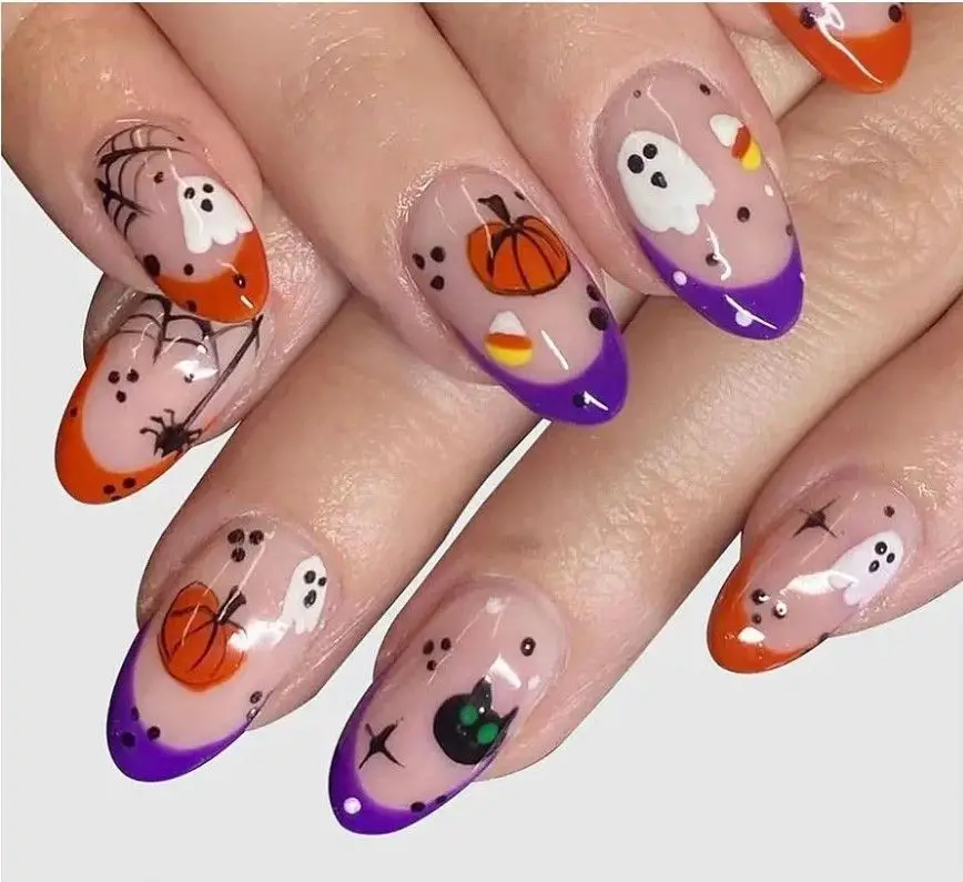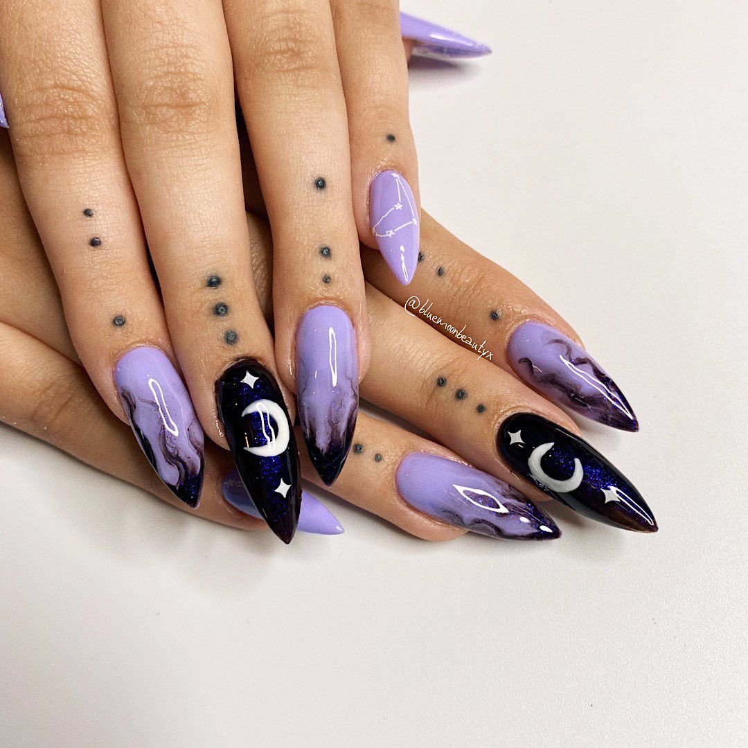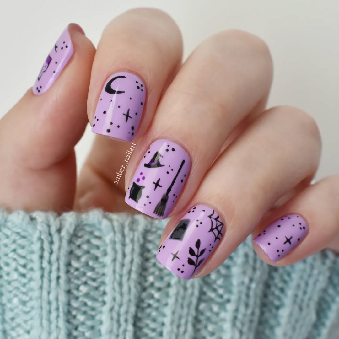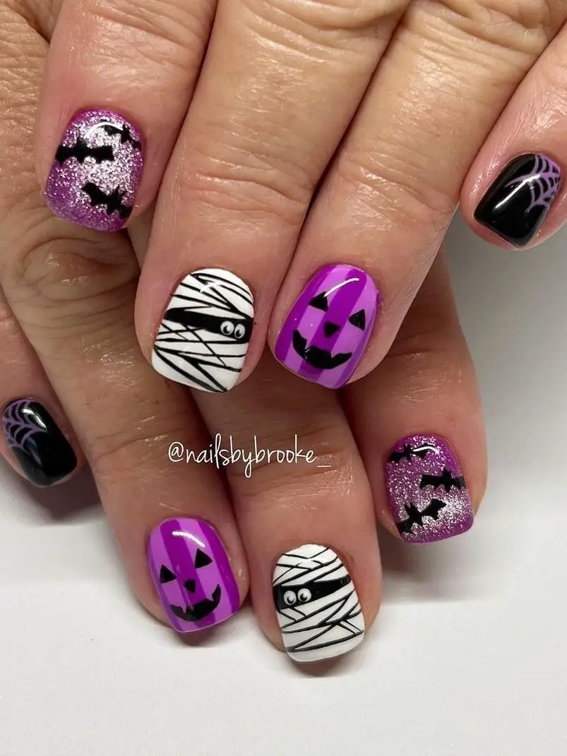 This season, purple nail designs are all about creativity and boldness. From ghostly lilac tips to shimmery violet ombrés, and even detailed witch hat accents, there are endless ways to let your nails tell a spooky story. Pair your purple mani with your Halloween costume or rock them solo for a festive vibe that turns heads. The beauty of purple is how versatile it is—it can be eerie, chic, or totally glam depending on the design you choose.