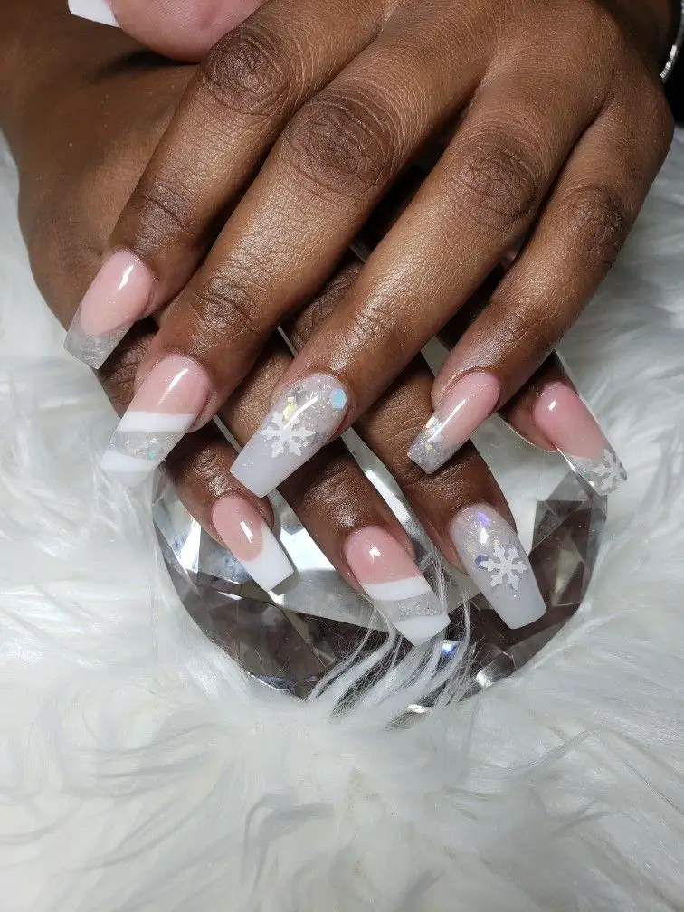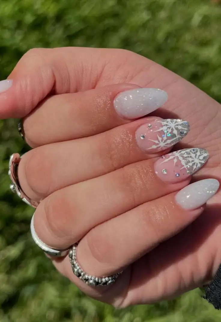 Winter is basically the official season of ✨extra✨, and nothing screams “main character in a cozy snow-globe world” more than sparkling snowflake nails. ike, if your nails don’t look like they were dusted by a magical winter fairy, what are we even doing? Snowflake nail art is basically the winter version of glitter gloss—soft, shimmery, and always giving ✨pretty girl aesthetic✨. From frosty silvers to soft whites to icy blues that make you feel like the queen of your own snow kingdom, this trend is your sign to upgrade your winter vibe.