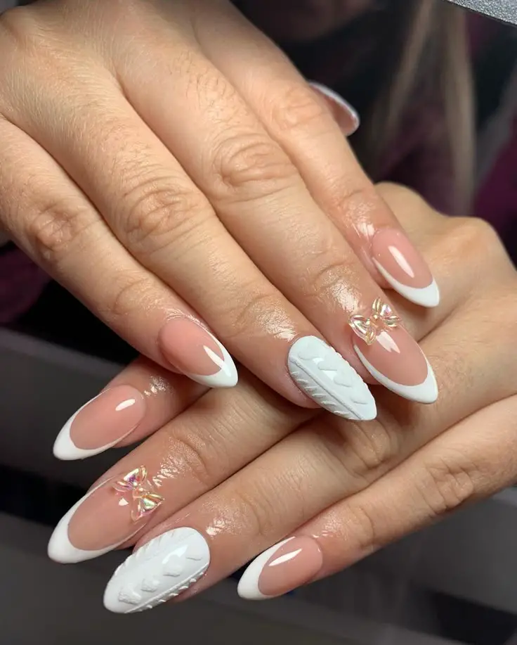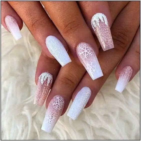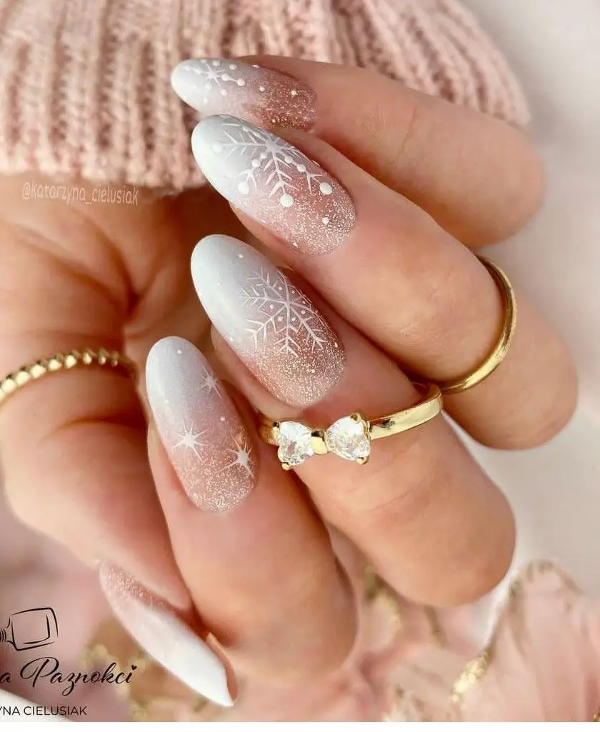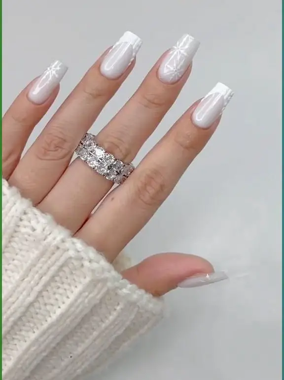Think of white nails as the cozy sweater of manicures—they literally go with everything, from chunky knits to satin holiday fits. Whether you’re the kind of girl who prefers soft milky whites, bold snowy chrome, or glitter-drenched tips that look like freshly fallen snow, there’s a winter-white look with your name on it. Plus, white is like the blank canvas of nail art: you can layer shimmer, add tiny snowflakes, throw in pearl accents, or keep it plain and glossy for that minimalist baddie vibe.