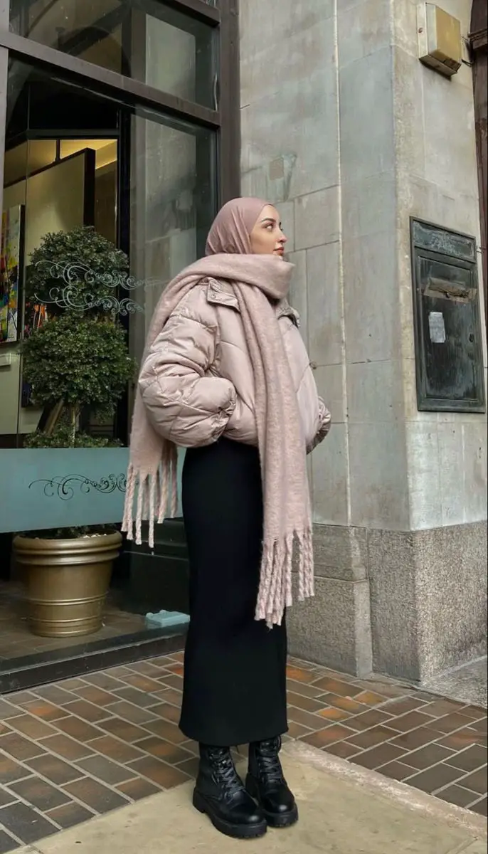 This year, winter hijab fashion is all about effortless layering — think oversized coats paired with chunky scarves, turtleneck knits tucked under longline blazers, and wide-leg trousers that move gracefully under wool coats. From soft beige palettes to rich mocha, olive, and charcoal tones, these color schemes bring both elegance and warmth to your wardrobe. Add a pair of chic ankle boots, a structured bag, and a neutral-toned hijab, and you’ve got a look that’s timelessly beautiful.