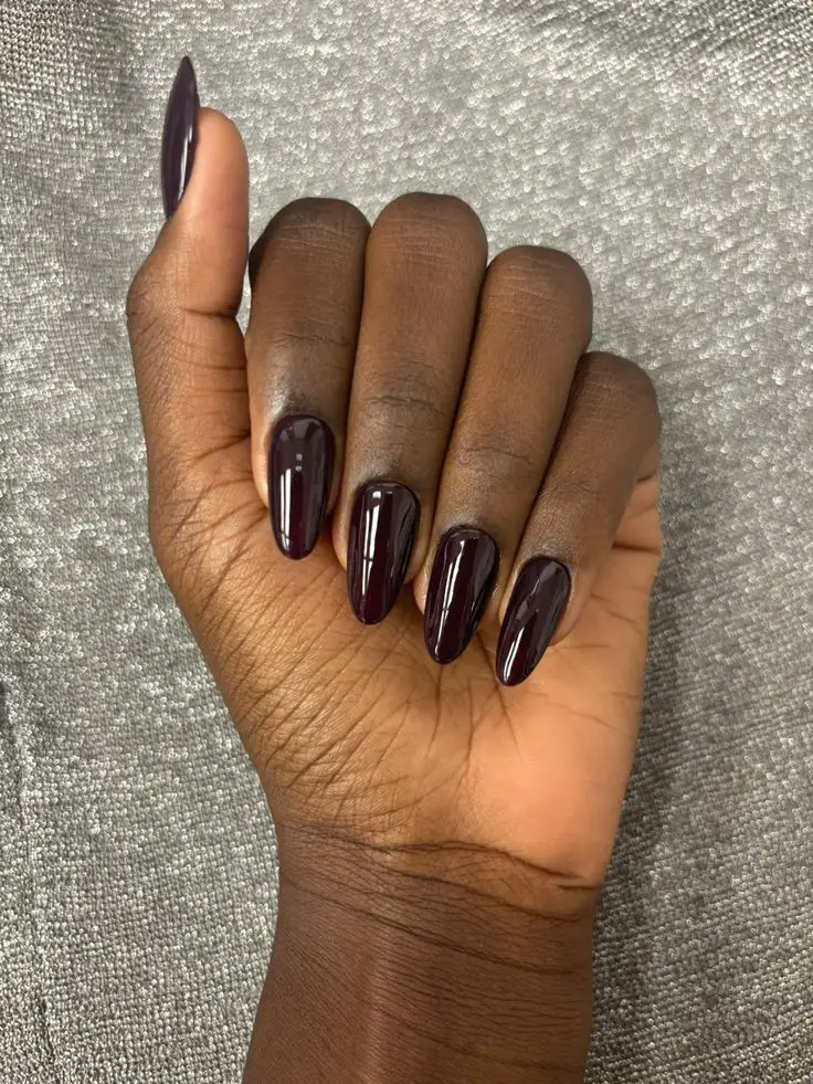 A deep, saturated plum or wine shade that reads lush and moody. The color is vibrant but dark, evoking berry compotes and winter gardens. It’s polished and dramatic without being gothic, perfect for nights out or day-to-night looks. A high-gloss finish or a touch of shimmer makes it pop beautifully.