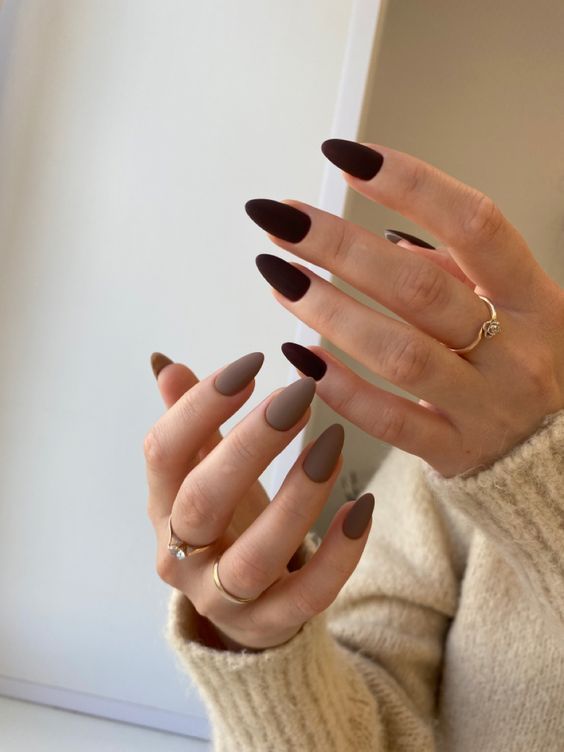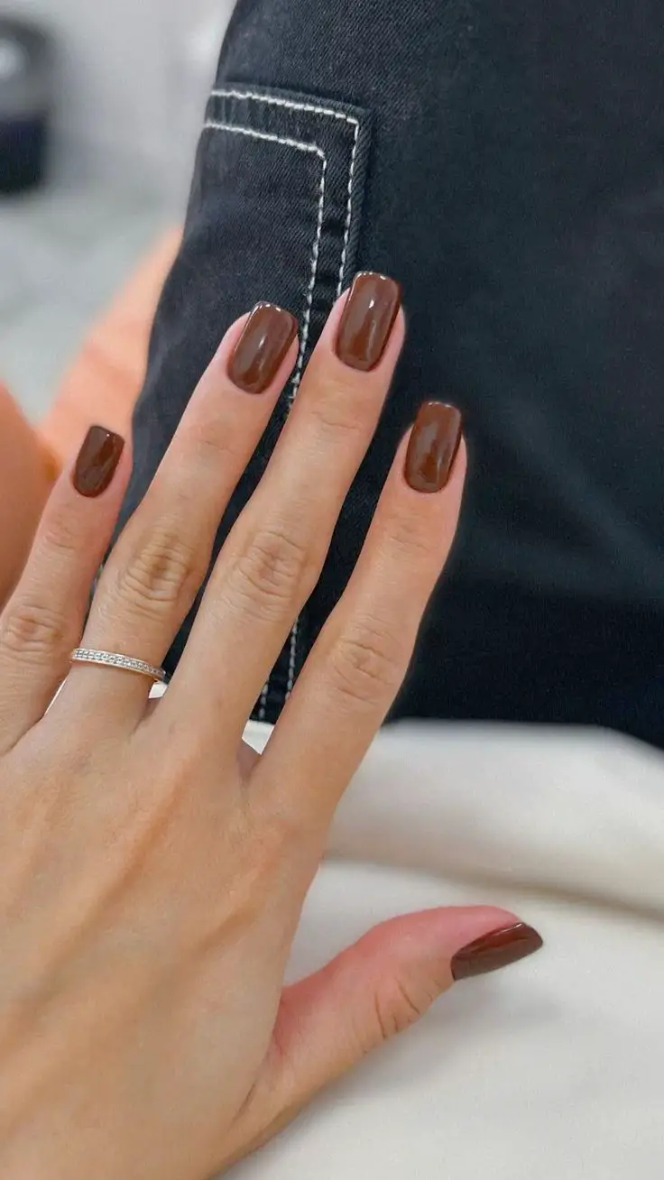 Deep, chocolaty brown with smooth, creamy undertones. This shade is rich and grounding, offering a stylish alternative to black. Because brown is getting its moment, this tone feels fresh yet cozy — perfect for winter layering. Use in glossy or satin finishes to emphasize its depth and warmth.